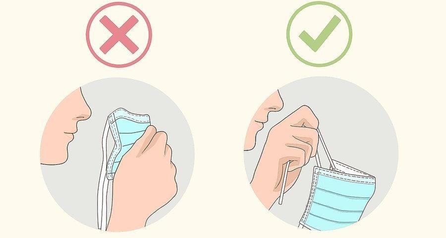 2-Tirar a máscara com cuidado – retirar a máscara pegando pelas alças e não tocar na parte da frente da máscara.