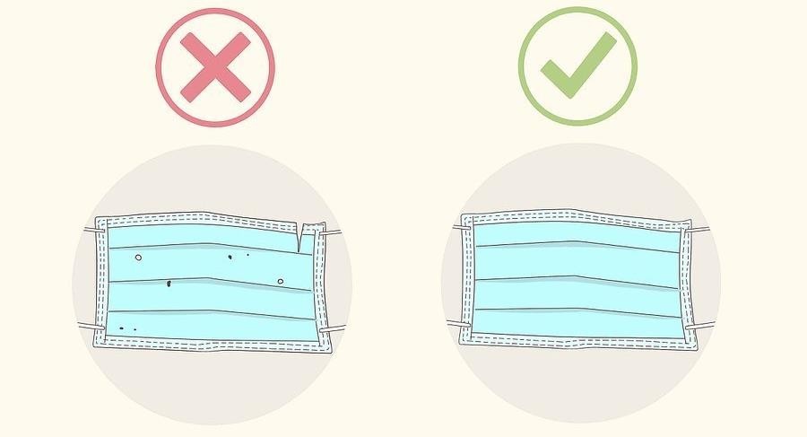 2-Verificar o estado da máscara – Depois de tirar a máscara da caixa, verificar se ela está em perfeitas condições ou se tem algum defeito, como rasgos.