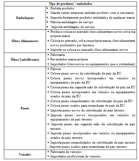 Os produtores de produtos abrangidos pela responsabilidade alargada do produtor;