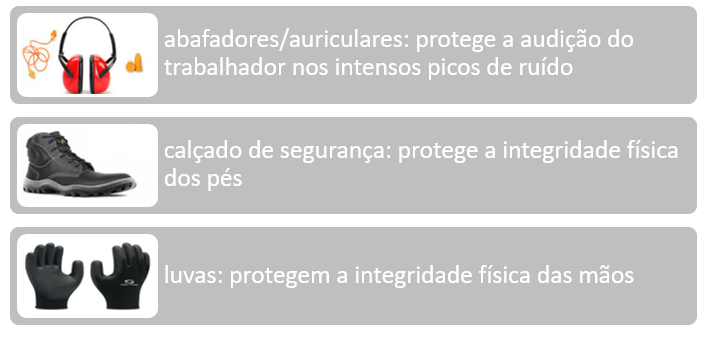 Os equipamentos de proteção são indispensáveis para a execução de trabalhos em segurança e devem sempre ser disponibilizados pela entidade empregadora. Assinala-se a importância da existência de documento assinado e mantido em constante atualização contendo a descrição de todos os equipamentos de proteção que são entregues.