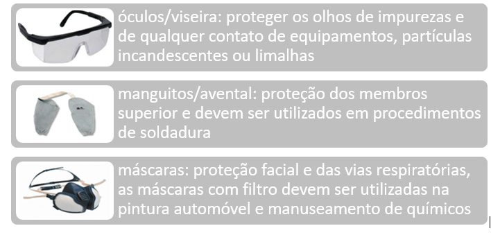 Os Equipamentos de Proteção Individual ou também conhecidos por EPI são dispositivos para uso individual por forma a proteger o trabalhador dos riscos no desempenho das suas funções. Os principais EPI utilizados em oficina auto são: